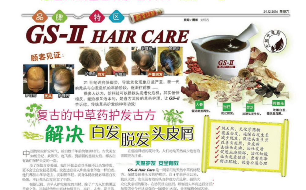 GS-II Hair Care aspires to become one of the top Hair Care franchises - with strong roots in Chinese Herbology - in Malaysia and Singapore. We are looking for partners who too favour natural methods of hair care.